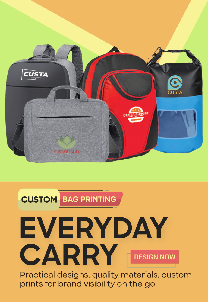 Custom bag printing in Malaysia. Look at CUSTA's complete bag collection here, we offer from laptop backpacks and backpacks to document bags, chest bags, sling bags, waterproof bags, and cooler bags. You can select your bag style, upload your logo or design, and then we will print and delivery. In CUSTA, we offer silkscreen printing, heat transfer, embroidery, and sublimation printing services. There is no MOQ and we are also capable of large quantity order. You can consider of us when you are looking for corporate gifts, promotional merchandise, employee appreciation, trade shows, and branded giveaways. Our custom printing transforms standard bags into powerful marketing tools for you.