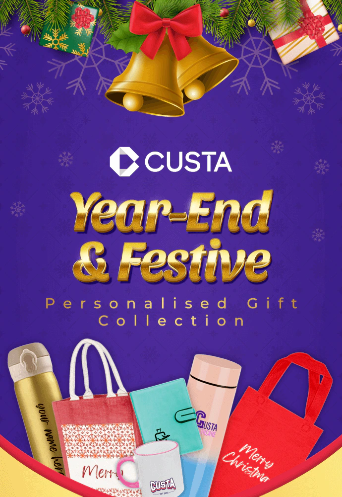Make your brand unforgettable this holiday season! CUSTA offers a curated selection of Year-End gifts and corporate premiums designed to leave a lasting impression. We prioritize practical and high-quality items like custom notebooks, sophisticated pens, and premium umbrellas. From personalized drinkware to custom apparel, we provide easy, innovative solutions to thank clients, reward staff, and boost your brand visibility. Order your festive gifts today, there's no minimums and stunning results guaranteed.